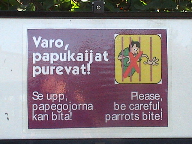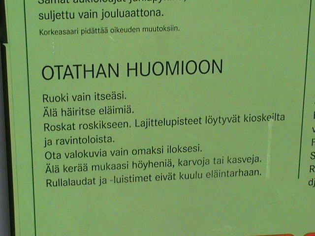 Kilpi eläintarhassa. Вывеска в зоопарке.