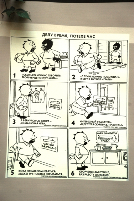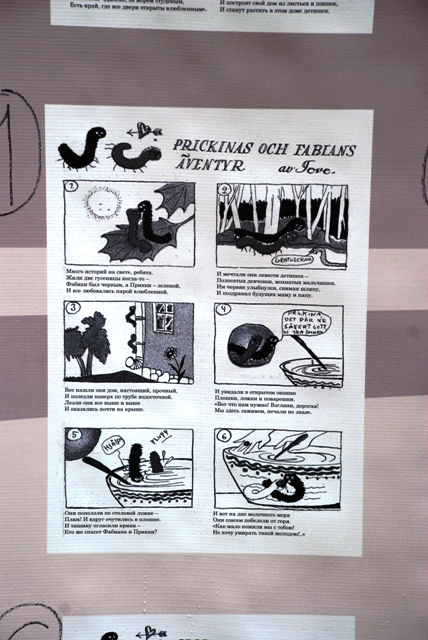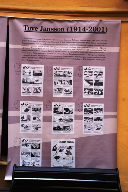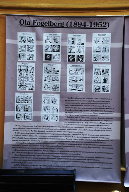 На выставке, которая продлится до 11 октября, представлены работы художников Veli Giovani, Akseli Halonen, Poika Vesanto, Asmo Alho, Ola Fogelbergille и Tove Jansson. Камерность выбранного для экспозиции места, конечно, предполагает лишь краткое знакомство с творческим наследием финских комикс-мастеров, но даже те немногие фрагменты, что выставлены для публики, заставят многих заинтересоваться феноменом финских комиксов.